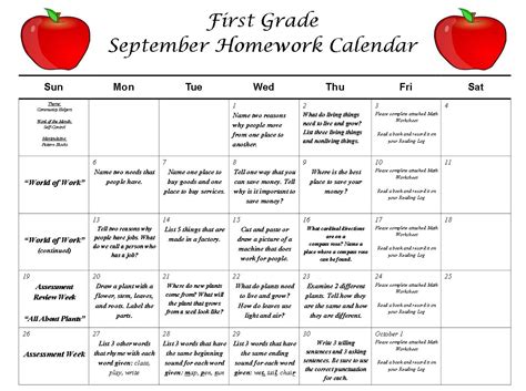 Read Online first grade homework calendar Doc